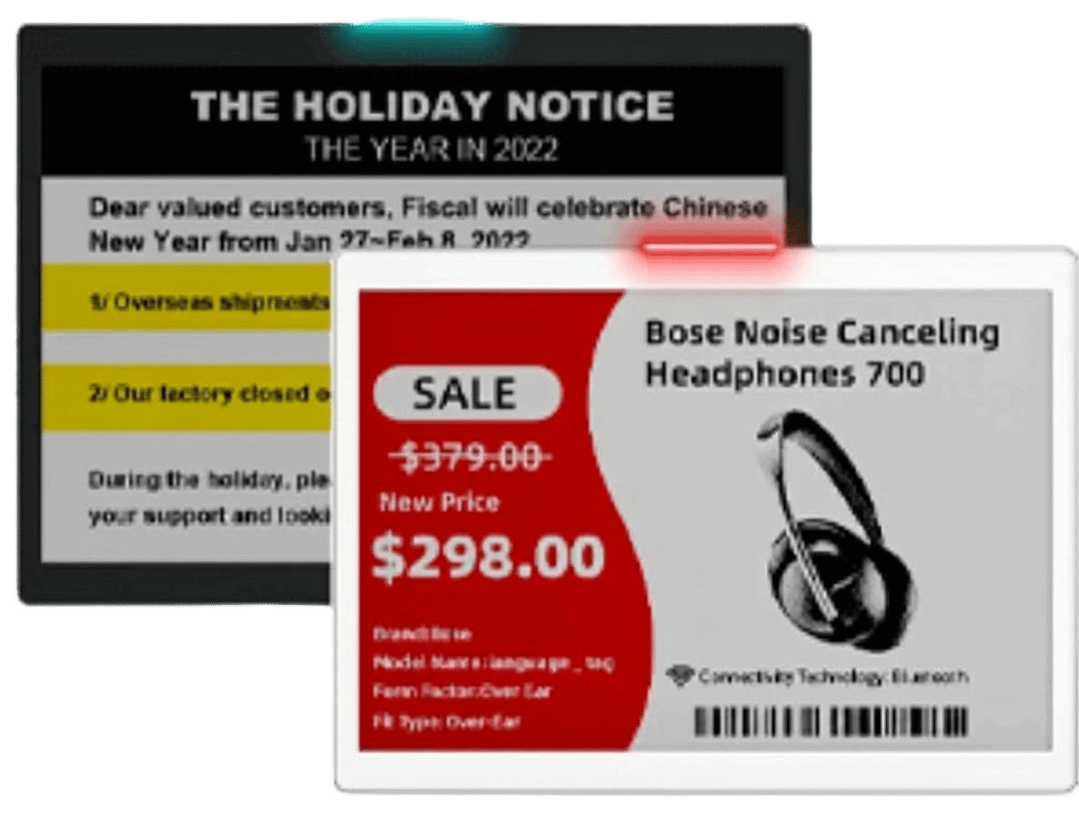 E-ink displays consume ultra-low power, delivering up to 5 years of battery life with multiple daily updates.